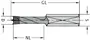 Ausführung: HW-massiv-Schneidkopf mit Zentrierspitze, zwei Schneiden und negativ angeschliffenen Vorschneidern. Vergrößerter Rückenfreischliff. Spiralteil kunststoffbeschichtet. Zylinderschaft mit Spannfläche und Tiefeneinstellschraube.