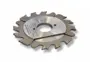 Ausführung: Grundkörper aus Stahl; Räumerschneiden flach mit oben und unten liegenden Vorschneidern, umfang- und flankenschneidend